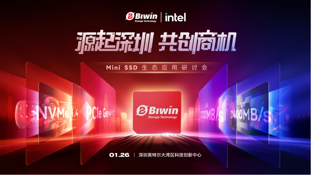 2026年1月26日,由佰维存储携手英特尔共同举办的“源起深圳,共创商机——Mini SSD生态应用研讨会”在深圳英特尔大湾区科技创新中心圆满落幕。本次盛会汇聚了来自算力、先进封装、存储主控、终端制造等产业链上下游的核心企业、行业伙伴与权威媒体,共同见证了佰维新一代旗舰产品Mini SSD的生态布局,深入探讨了AI时代下存储产业的协同发展与商业未来。