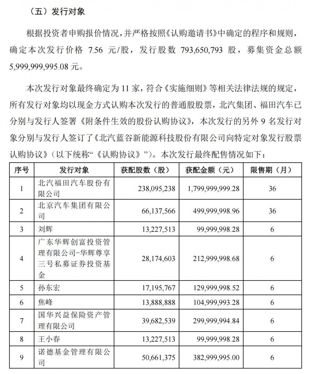 根据A股定增规则,发行底价通常可低至基准价的八折。然而北汽蓝谷本次定增展现出强劲的市场吸引力,共有23家机构参与询价,申购金额超过135亿元。按照"价格优先、认购金额优先、认购时间优先"原则,最终发行价被推高至7.56元/股,达到基准价的九三折,相比八折底价提升15%。值得注意的是,除大股东外,仅有9家报价高、认购金额大的机构和个人投资者成功中标,超七成资金遗憾错过本次定增,为争取参与机会,部分投资者甚至报出8.55元的申购价格,远超发行底价。