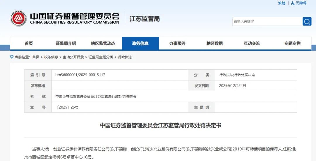 一创投行在鸿达兴业2019年可转债项目持续督导期间未勤勉尽责,包括未充分核查募集资金投入及归还情况;未按规定发表核查意见,导致出具的相关持续督导文件存在虚假记载;未按规定履行督促及报告义务。