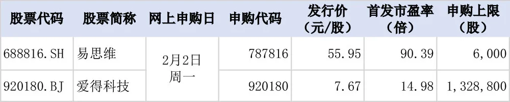 据目前安排,若无变化,下周(2月2日至6日)有2只新股可申购,分别为科创板1只和北交所1只。