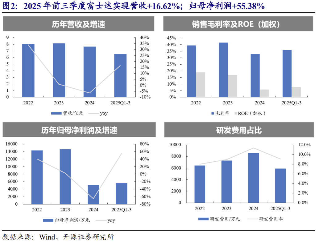 2025 年前三季度实现营收 6.52 亿元,同比增长 16.62%;归母净利润达 5593 万 元,同比增长 55.38%,扣非净利润增幅达 77.53%。2025Q3 单季归母净利润 1875 万 元,同比大幅增长 698.40%。