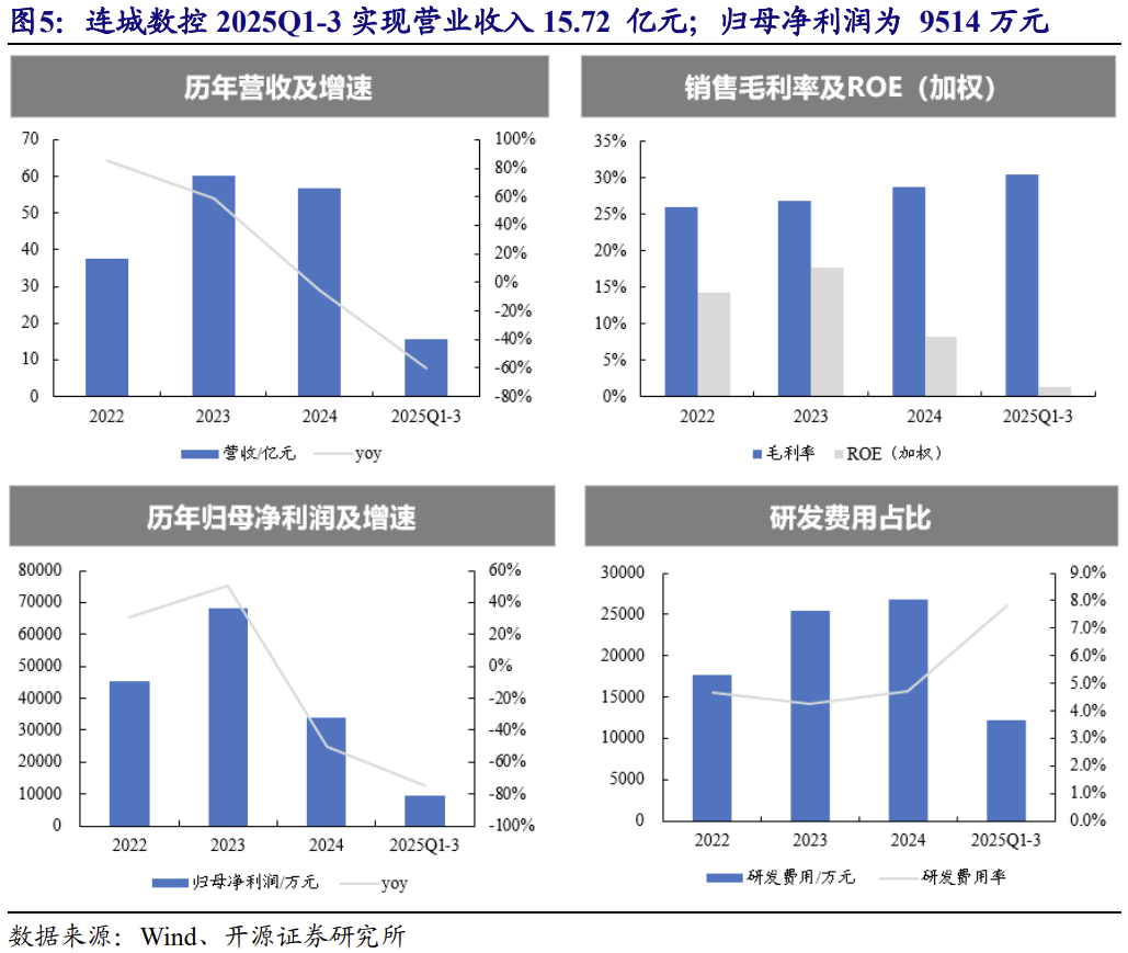 业绩预告显示 2025 全年连城数控预计实现归母净利润预计为 6,300~9,400 万元, 变动幅度为-81.50%~-72.39%。