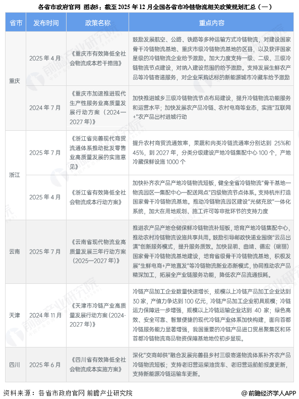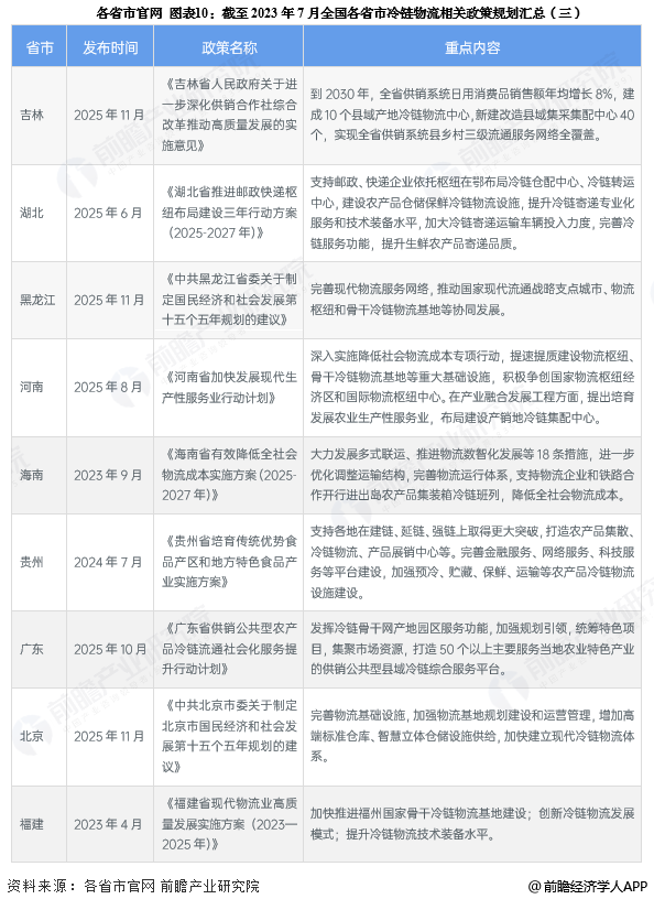 ——31省市冷链物流行业政策汇总