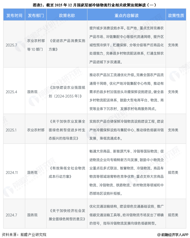 ——国家层面冷链物流行业政策汇总