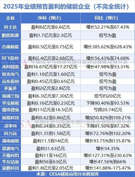 数字储能网认为,国内外双市场共振下,中国储能企业2025年业绩预告中盈利呈现头部高增、整体复苏、材料端集中的鲜明特征。