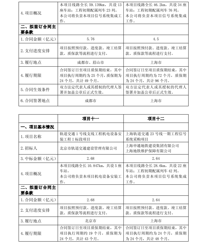 市域(郊)铁路成都至眉山线信号系统集成采购与施工总承包项目,中标金额5.76亿元;