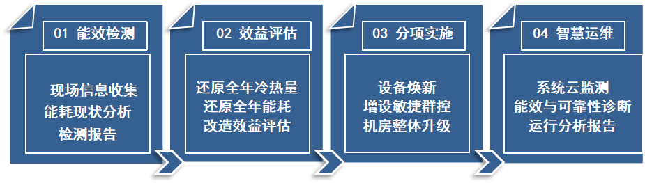 结合系统现状及初投资要求,提供高效设备焕新、增设敏捷群控、系统整体升级三种改造实施形式。