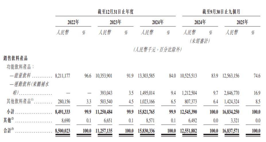 招股书显示,2022年、2023年、2024年和2025年前9个月,东鹏饮料分别实现营收85.05亿元、112.63亿元、158.39亿元和168.38亿元,同比增长21.89%、32.42%、40.63%和34.16%;