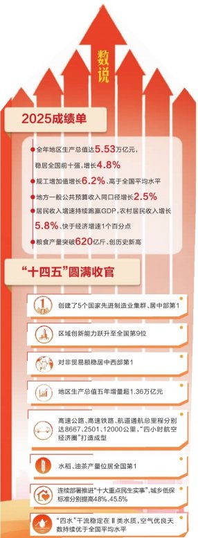 报告指出,过去五年,湖南省面对复杂严峻的发展形势和自然灾害的冲击挑战,展现出了强大的应对能力和韧性。全省“三个高地”标识度明显提升,综合经济实力不断增强,基础设施支撑力更加坚实,农业农村现代化稳步推进,人民群众获得感持续提高。
