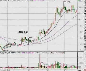 如果K线收阴,回落的股价恰好落在13日均线与55日均线的结点处,即"黑客占击"形态成立。