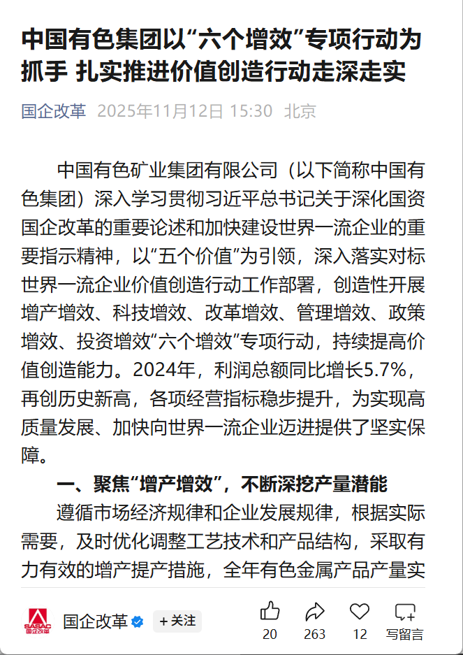 中国有色集团以“六个增效”专项行动为抓手 扎实推进价值创造行动走深走实