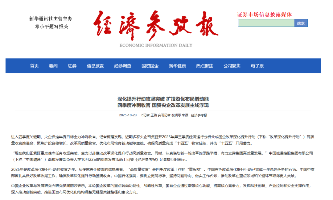 深化提升行动攻坚突破 扩投资优布局增动能 四季度冲刺收官 国资央企改革发展主线浮现