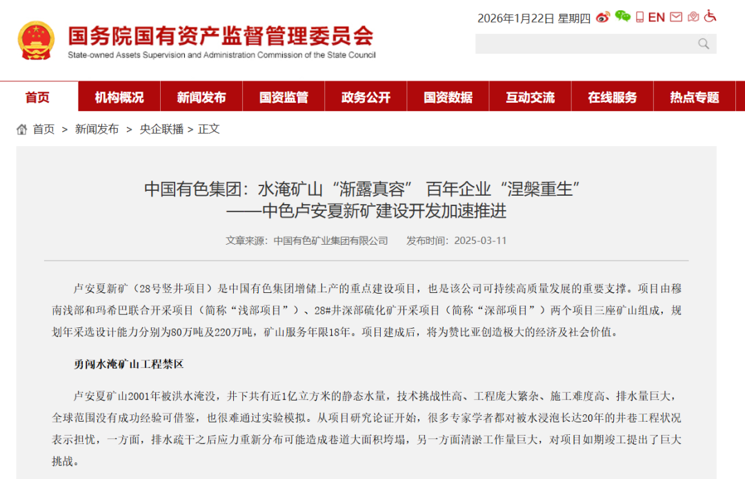 中国有色集团:水淹矿山“渐露真容” 百年企业“涅槃重生”——中色卢安夏新矿建设开发加速推进