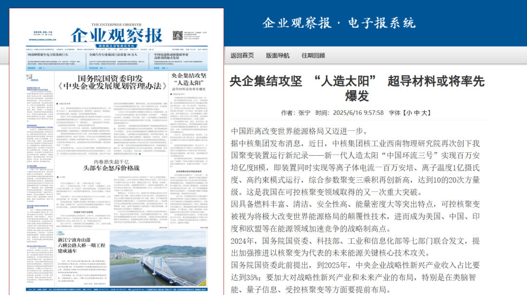 央企集结攻坚“人造太阳” 超导材料或将率先爆发