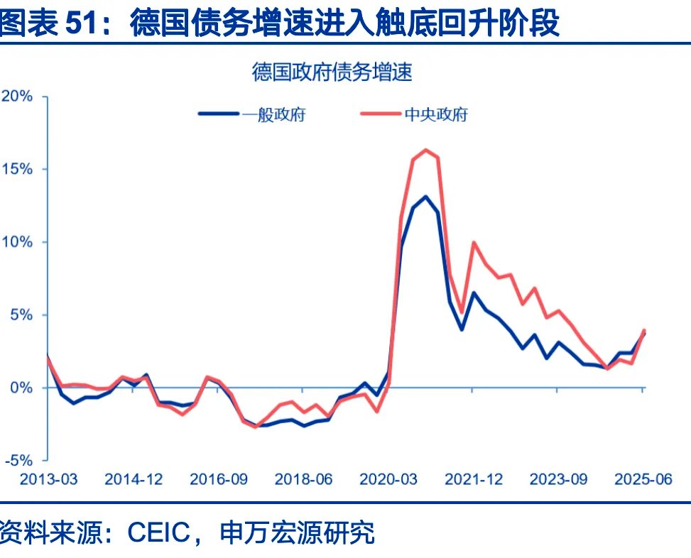 总量层面,财政支撑下,美、德、日经济增速仍有韧性。美欧日财政拉动逻辑各不相同,美国减税脉冲可较快传导到经济,起到再加速作用;日本高债务叠加利率正常化,财政或仅能起托底效果;欧洲内部政策分化较大,增量集中在德国,德国或从零增长中温和修复,但依赖政策落地进度。