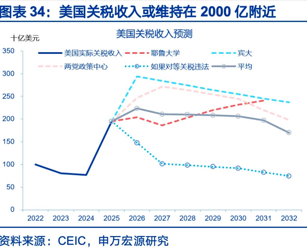 美国通过关税与支出削减进行财政融资,这让关税具备了更强的融资属性,即使关税被判违法,有效关税税率或也仅降低2-3个百分点。2024财年关税收入770亿,2025财年关税收入升至1949亿。即使对等关税被判决违法,特朗普也可能动用232条款等替代性措施补位,预计2026年关税收入或仅微降至2232亿美元,有效税率或仅小幅下降2-3个百分点。美国财政支出削减量级或相对有限,根据已通过国会立法的项目计算,2026年教育与健康支出或削减210亿,环境与公共工程支出或仅削减10亿。特朗普也夸大了2025年财政整顿成果,2025年财政支出削减集中在教育领域,总额1770亿,但其仅是学生贷款的账面数据冲抵,实际赤字规模并未减少。