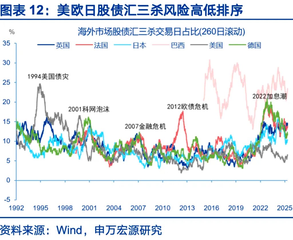 债务风险特征转变,显性危机可能性虽低,但隐性成本已在侵蚀市场。本轮海外债务风险出现四个新特征:1)风险形态转变为流动性冲击;2)冲击频率上升;3)地缘风险与债务风险深度融合;4)风险并未出清,而是不断积累。新特征让显性债务危机的可能性降低,但隐性代价是不断侵蚀美元信用及市场承受空间,直到某次冲击突破阈值,倒逼出清。