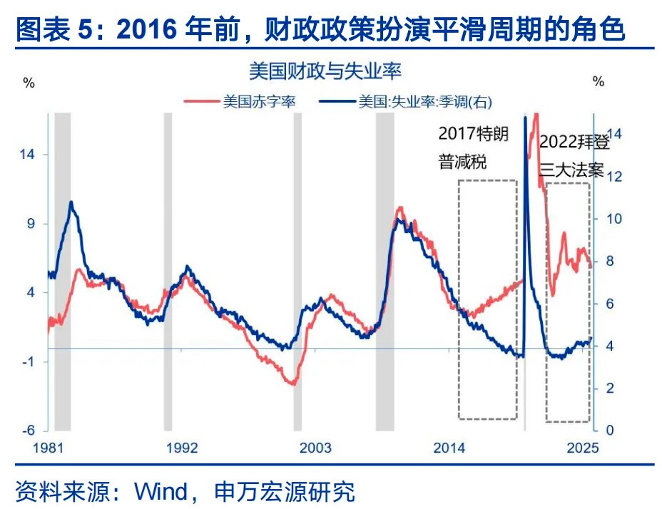 财政的作用从被动平滑周期转变主动引导周期。疫情前,财政往往扮演平滑经济周期的作用,在经济衰退时期,财政通过税收、补贴等工具逆周期稳定经济,经济复苏后,政策工具自然收缩,财政具有回归正常化的能力。以2025年美国《美丽大法案》、欧洲财政转向、高市扩财政等事件为标志,海外财政扩张不再以衰退作为触发条件。在经济并未失速的背景下,政策制定者出于政治、产业竞争及地缘安全的需求,主动选择了积极的财政立场,财政政策不再平滑周期,而是主动引导周期。