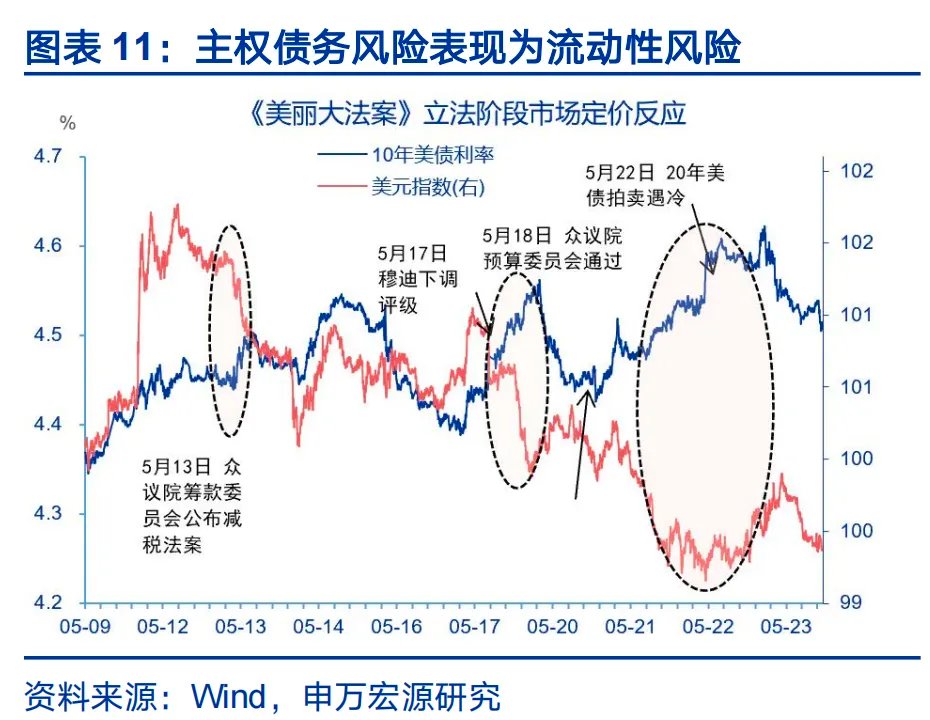 3、市场未必单纯定价经济基本面,或更加定价复苏的融资方式是否可持续。典型的经济复苏阶段,宏观系统性风险往往自然下降,2026年的经济增长建立在债务透支之上,美国经济强劲=美元强的逻辑或持续受到挑战。短期内,债务风险演变为系统性危机的概率或较低,但流动性冲击或更高频产生,倒逼政府保债市、汇市。