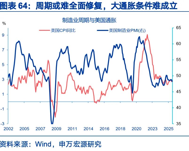 第四,财政对再通胀压力可能低于市场预期,美国经济过热的条件或难以具备。宽财政可推升名义需求,推升通胀。需求方面,2026年美国财政的减税脉冲集中在上半年,或产生阶段性的通胀压力,但参考2023年1月减税落地后,美国PCE环比在消费的带动下,环比增速较上个月抬升0.17个百分点,随后增速回落。此外,由于本轮经济周期、制造业周期全面修复的难度较大,对通胀的持续性压力或低于传统的经济复苏周期。