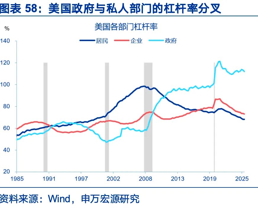 第二,发达国家“带病”修复,经济回升的同时,债务风险也在积累。经济复苏阶段,宏观系统性风险往往自然下降,表现为信用利差收敛,金融压力缓解,不确定性缓和。如2020年下半年疫情后的复苏、2009年至2010年金融危机后复苏。但自2021年以来,在高利率、高通胀、高赤字的环境里,私人部门承担扩张风险的意愿弱化,持续去杠杆,整体宏观风险更多地由主权政府承担,代价是政府部门资产负债表进一步恶化。2026年的经济增长建立在债务透支的基础至少,增速回升的同时,债务风险或也在积累,表现为股债汇冲击持续频发。未来市场或未必单纯定价经济基本面,而是定价复苏的融资方式是否可持续。