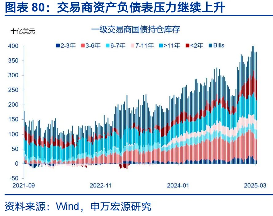 第三、地缘风险与主权债务风险高度融合。更高的地缘不确定性倒逼国防扩张,地缘风险由于难以量化,只能通过更高的风险溢价来定价,债务风险与地缘风险同频共振。第四、风险并未出清,而是不断积累。当前,海外债务风险暂且停留在市场层面,尚未向实体经济传导。体现为:银行端,美国资产负债表存在韧性,截至2025年,美国银行业资产充足率为15.36%,较2019年抬升91BP;企业端,美国信用利差处于低位。但每次流动性冲击均在消耗市场、政策的承接能力,美债交易深度下降,做市场资产负债表压力上升,买家结构劣化。债务问题或继续以利率、汇率冲击的形式反复出现,直到某次冲击突破阈值,击穿政策空间,出现金融危机。