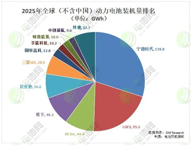 韩国公司方面,2025年,三大韩系电池公司装车量总计168.4GWh,市场份额为36.3%。