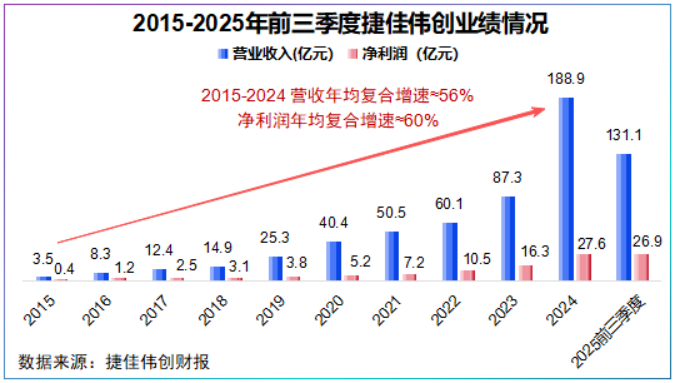 若拉长到2015-2024年,捷佳伟创营收年复合增速约56%,净利润年复合增速约60%,跑赢同行。
