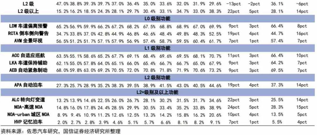 智能驾驶:标配L2级以上功能的乘用车渗透率11月同比+22pct