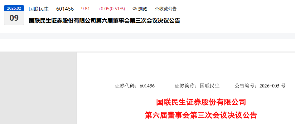 国联民生证券股份有限公司(以下简称 “公司”)第六届董事会第三次会议于 2026 年 2 月 6 日以书面方式发出通知,经全体董事同意后,于 2026 年 2 月 7 日在公司会议室以现场结合通讯的方式召开。