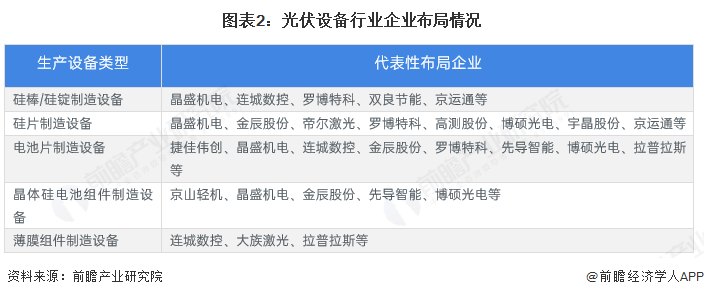 行业主要上市公司:捷佳伟创(300724)、晶盛机电(300316)、迈为股份(300751)、京山轻机(000821)、连城数控(920368)、北方华创(002371)、奥特维(688516)金辰股份(603396)、帝尔激光(300776)、罗博特科(300757)、高测股份(688556)、双良节能(600481)先导智能(300450)、微导纳米(688147)、大族激光(002008)、博硕光电(831019)、拉普拉斯(688726)、宇晶股份(002943)、京运通(601908)等