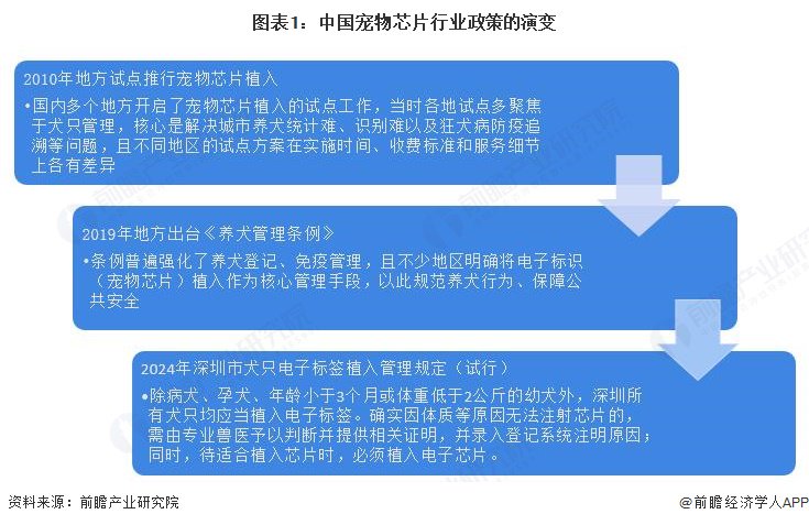 中国宠物芯片行业政策早期2010年国内多个地方开启了宠物芯片植入的试点工作,当时各地试点多聚焦于犬只管理,核心是解决城市养犬统计难、识别难以及狂犬病防疫追溯等问题,且不同地区的试点方案在实施时间、收费标准和服务细节上各有差异。2019年多个地方密集出台或落地实施《养犬管理条例》,这些条例普遍强化了养犬登记、免疫管理,且不少地区明确将电子标识(宠物芯片)植入作为核心管理手段,以此规范养犬行为、保障公共安全。2024年深圳市犬只电子标签植入管理规定(试行),规定除病犬、孕犬、年龄小于3个月或体重低于2公斤的幼犬外,深圳所有犬只均应当植入电子标签。确实因体质等原因无法注射芯片的,需由专业兽医予以判断并提供相关证明,并录入登记系统注明原因;同时,待适合植入芯片时,必须植入电子芯片。