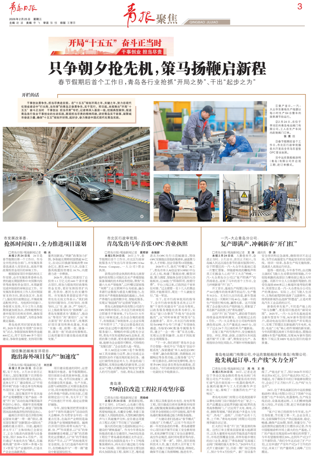 聚焦青岛各行业抢抓开局、实干争先的生动实践