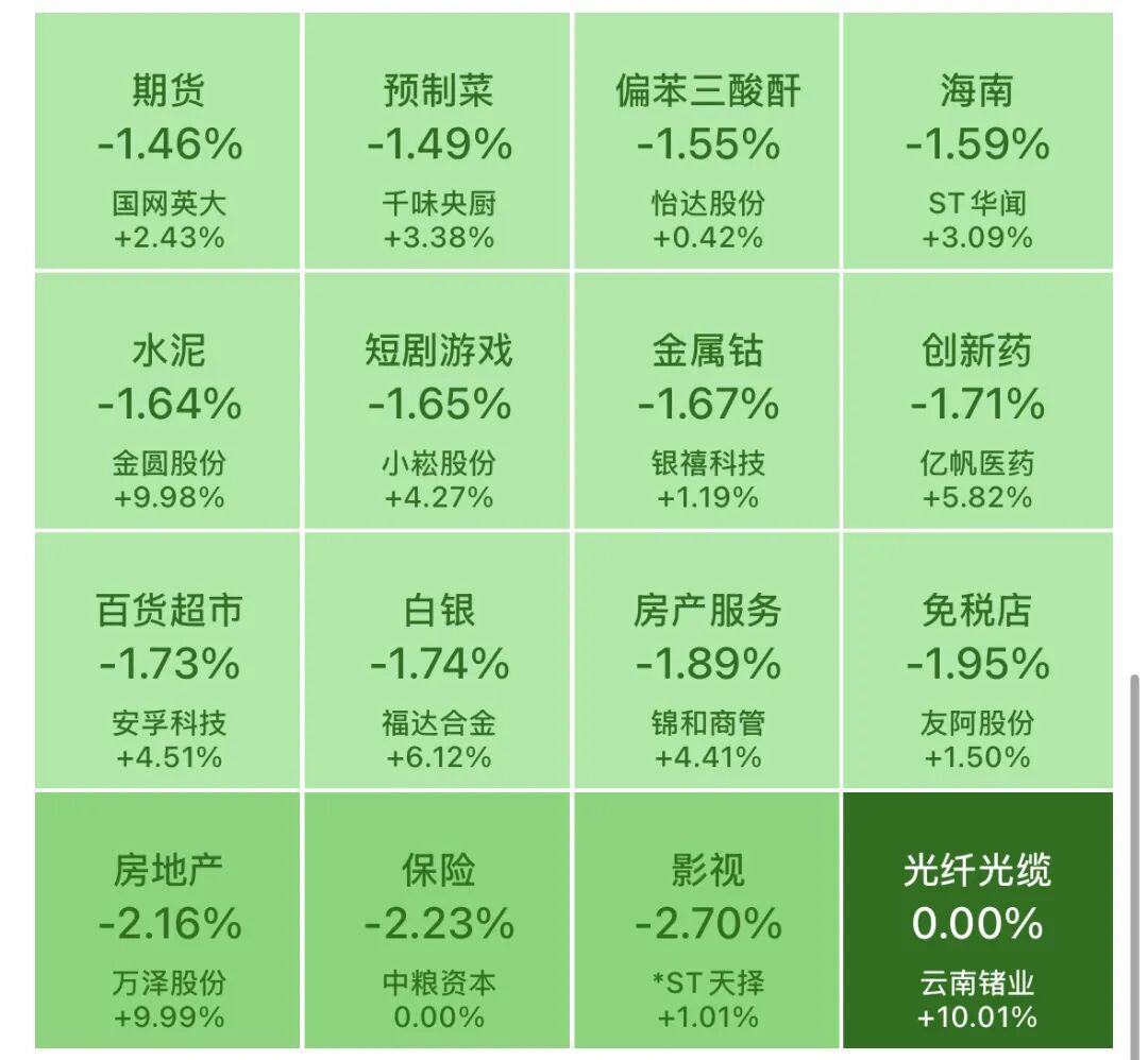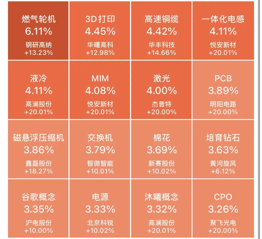 涨幅居前板块:AI硬件、风电设备、光纤光缆、小金属、化工涨价