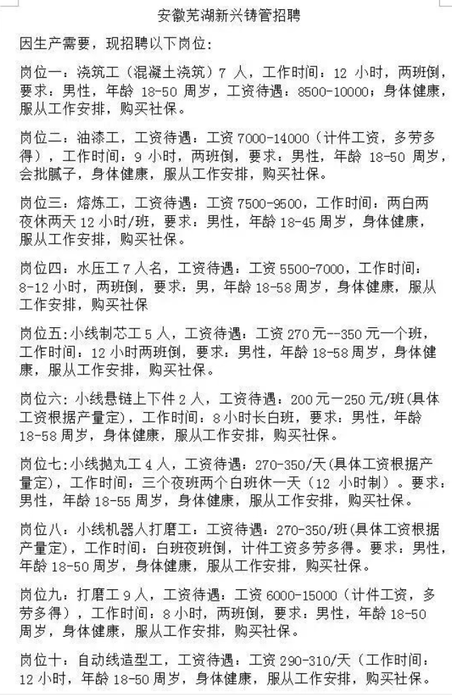 【求职招聘】安徽芜湖新兴铸管招聘