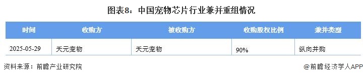 目前中国宠物芯片行业的兼并重组事件很少,兼并重组的类型主要为纵向兼并重组。天元宠物收购淘通科技,是为了补强自身线上零售能力的短板,将生产端的产品优势与淘通科技的线上运营优势结合,打通从宠物产品生产到线上销售的关键环节,减少对第三方线上渠道的依赖,降低渠道拓展成本,这完全匹配纵向收购通过整合产业链上下游提升整体竞争力的核心逻辑。