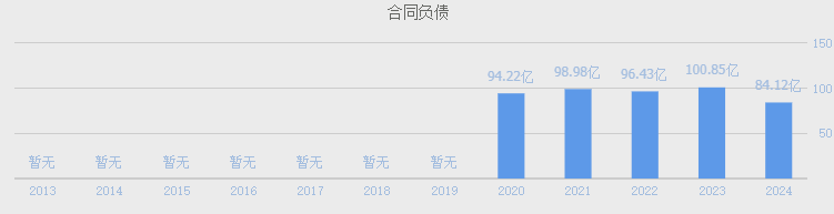 2024年公司合同负债84亿占总资产4.5%(1850亿),合同负债占总资产比例不低,较去年同期101亿同比下降17%。