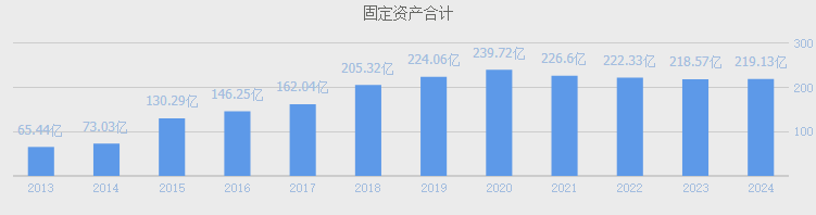 2024年公司固定资产219亿占总资产11.8%(1850亿),固定资产占总资产比例不高,不过公司每年都有不少在建工程,表明公司仍在不断扩张。