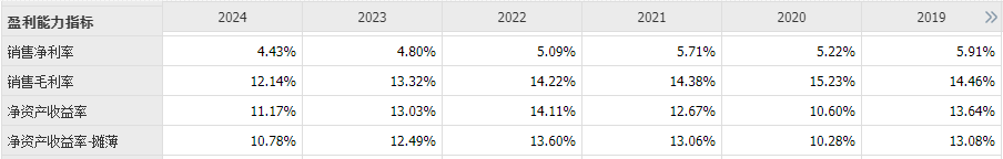 2024年公司毛利率12.14%较去年同期13.32%下降1.18%,净利率4.43%较去年同期4.8%下降0.37%,公司毛利率下降主要原因汽车行业竞争非常激烈,降价压力持续传导。