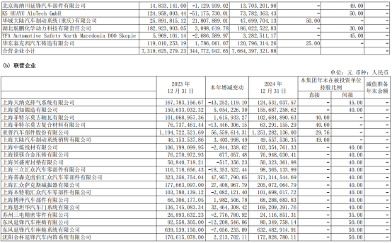 公司的长期股权投资主要有合营企业、联营企业,所投资的企业见下表。