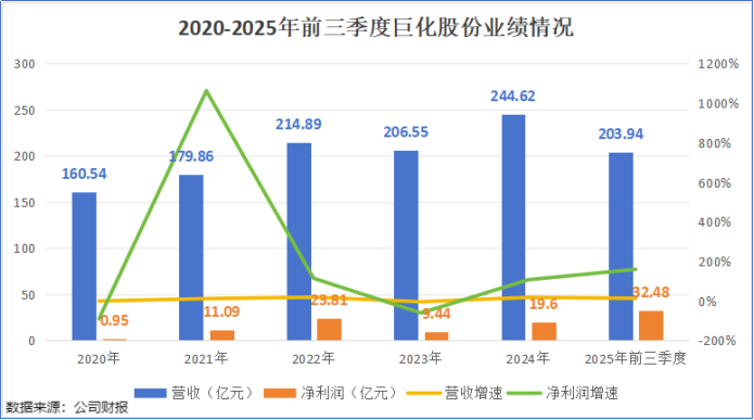 但仅仅一年之后,随着配额制的实施和产品涨价,巨化股份在2024年实现营收244.62亿元,同比增长18.43%;净利润回升至19.6亿元,同比增加107.69%。