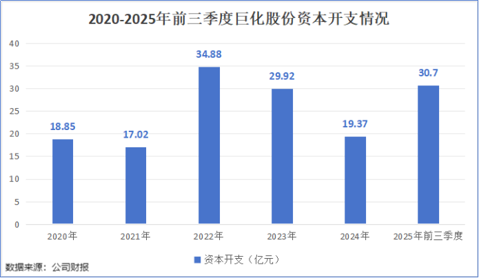 2022-2023年,巨化股份的资本开支分别为34.88亿元、29.92亿元,较2021年的17.02亿元明显增加。