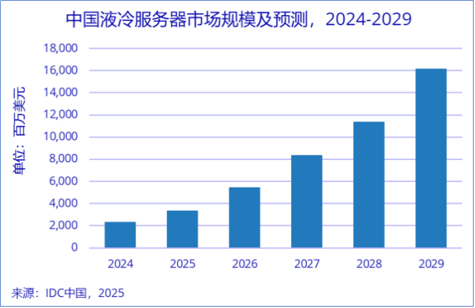 据预测,到2029年,我国液冷服务器市场规模将攀升至162亿美元,2024-2029年复合增速高达46.8%。