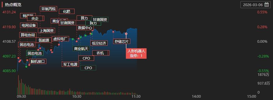 盘面上,美国缺电逻辑持续带动电网设备板块大涨,顺钠股份(000533)、汉缆股份(002498)3连板。政府工作报告提出推动创新药和医疗器械高质量发展,医疗、创新药板块集体走强,塞力医疗(603716)、万泽股份(000534)、中源协和(600645)等股收获涨停。此外,猪肉、化工、国产航母等板块盘中均有拉升。另一方面,霍尔木兹海峡封锁消息反复变化,石油天然气、煤炭开采加工板块震荡回调,石化油服(600871)、中曼石油(603619)、陕西黑猫(601015)、兖矿能源(600188)等多股下挫。
