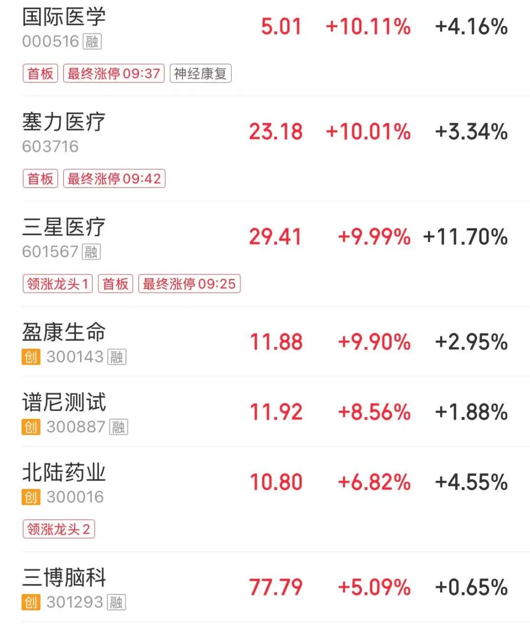脑机接口概念活跃,国际医学、塞力医疗(维权)涨停。