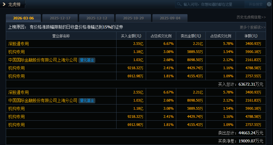 联特科技(301205)今日20cm涨停,成交额38.24亿元,换手率25.78%,盘后龙虎榜数据显示,深股通专用席位买入2.55亿元并卖出2.21亿元,3家机构专用席位净买入1.34亿元。
