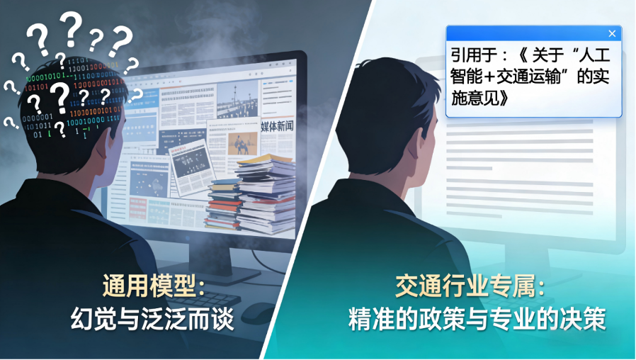 于交通行业而言,数据的准确性是底线。错引一条法规、误读一个标准,都可能导致严重的后果。通用AI模型因其较高的幻觉率,往往无法完全胜任交通专业内容的处理。