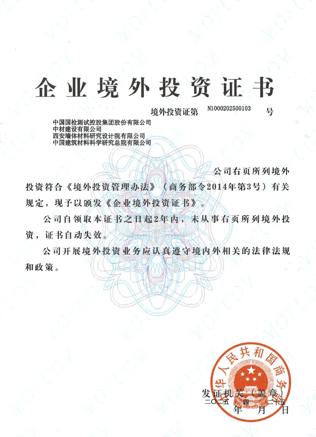 展望未来,国检集团将继续秉持“材料创造美好世界”企业使命,锚定建设世界一流综合型检验认证集团的目标,以更强的创新动力、更优的业务布局、更实的治理效能、更佳的品牌形象,在服务国家战略、推动行业进步、保障社会民生的新征程上,谱写高质量发展新篇章。