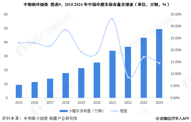 据中物联冷链委统计,2015-2024年,我国冷藏车保有量CAGR达到20%以上,2024年,我国冷藏车保有量约49.5万辆左右。