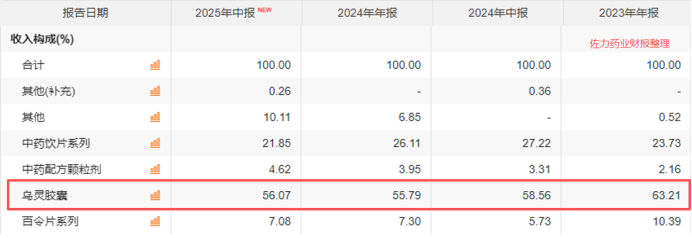 从营收结构看,近几年乌灵胶囊产品营收占比维持在60%附近,成为了佐力药业的核心营收支柱。